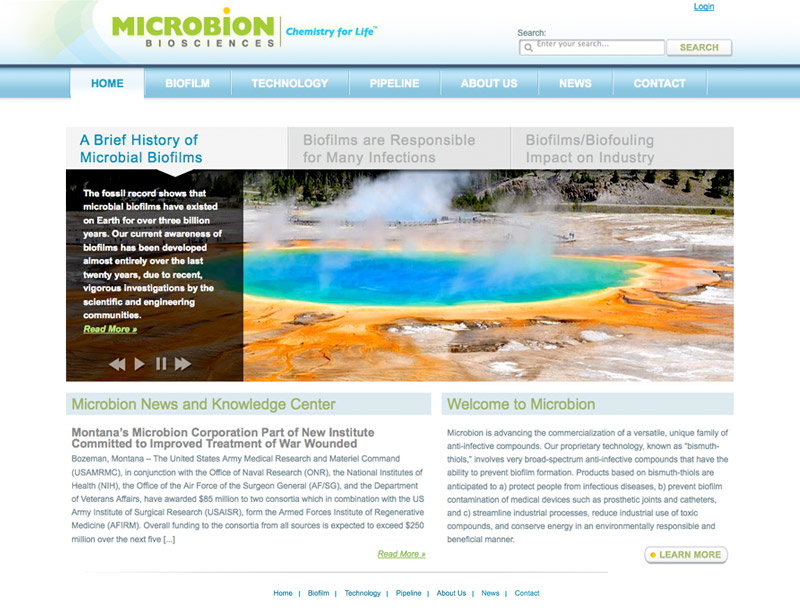 Planning, design and development of entire site in a short (2-3 week timeframe) for business timing purposes. Integration of unique photography, copy and functionality to support scientific and investment initiatives.