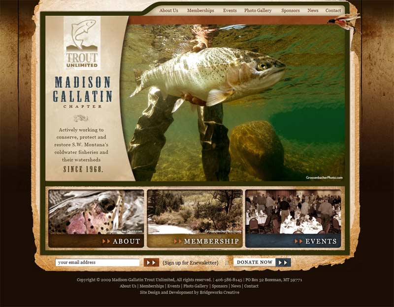 Madison Gallatin Trout Unlimited aims to conserve, protect and restore Southwest Montana's coldwater fisheries and their watersheds. BridgeWorks donated design and development time and skills to create a new web presence for the Madison Gallatin Chapter of Trout Unlimited.