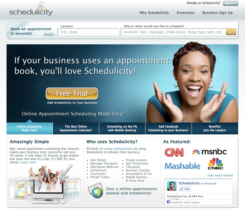 In-depth market research followed by design and development of marketing portion of website along with theme of application. Creation of unique marketing assets such as animated video, email templates and much more. Schedulicity is a revolutionary service that allows real-time appointment booking with participating service providers.